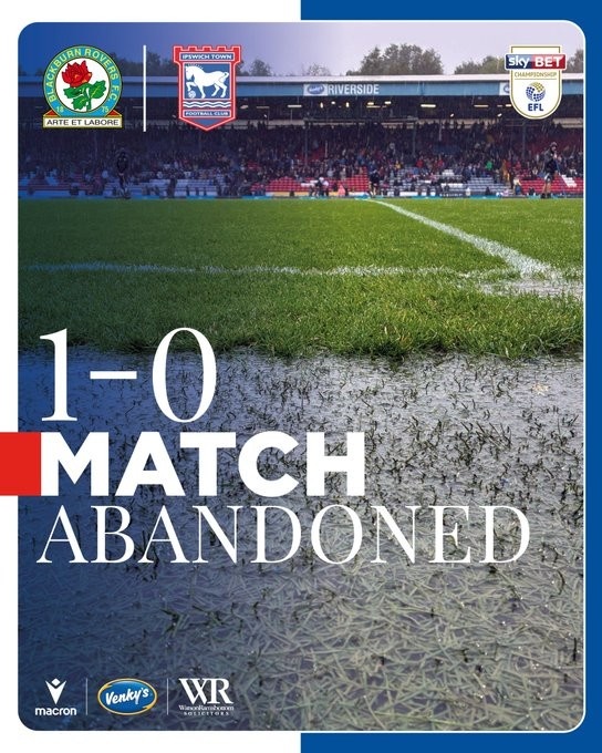 9月26日讯 《每日邮报》报道,布莱克本1-0领先10人伊普斯维奇的比赛进行到80分钟被大雨中断,现在EFL(英格兰足球联赛)要求比赛重新进行,这让布莱克本非常不满。