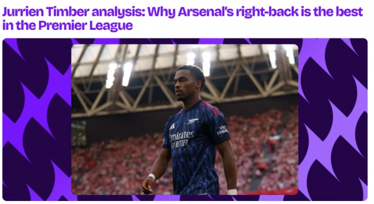 10月8日讯 OPTA撰文列出数据,在新赛季开局七轮过后,阿森纳后卫廷伯凭借其攻防两端的统治级表现,已成为英超最佳右后卫的有力竞争者,甚至可以说就是英超该位置当之无愧的第一人。